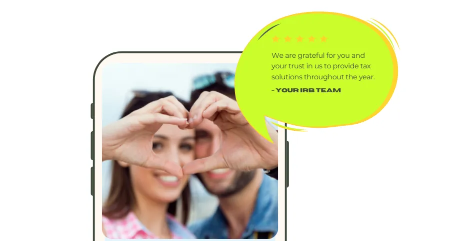 Please click the button below based on your experience with IRB.TAX, filing your taxes, and working with your tax specialist. We look forward to hearing from you!